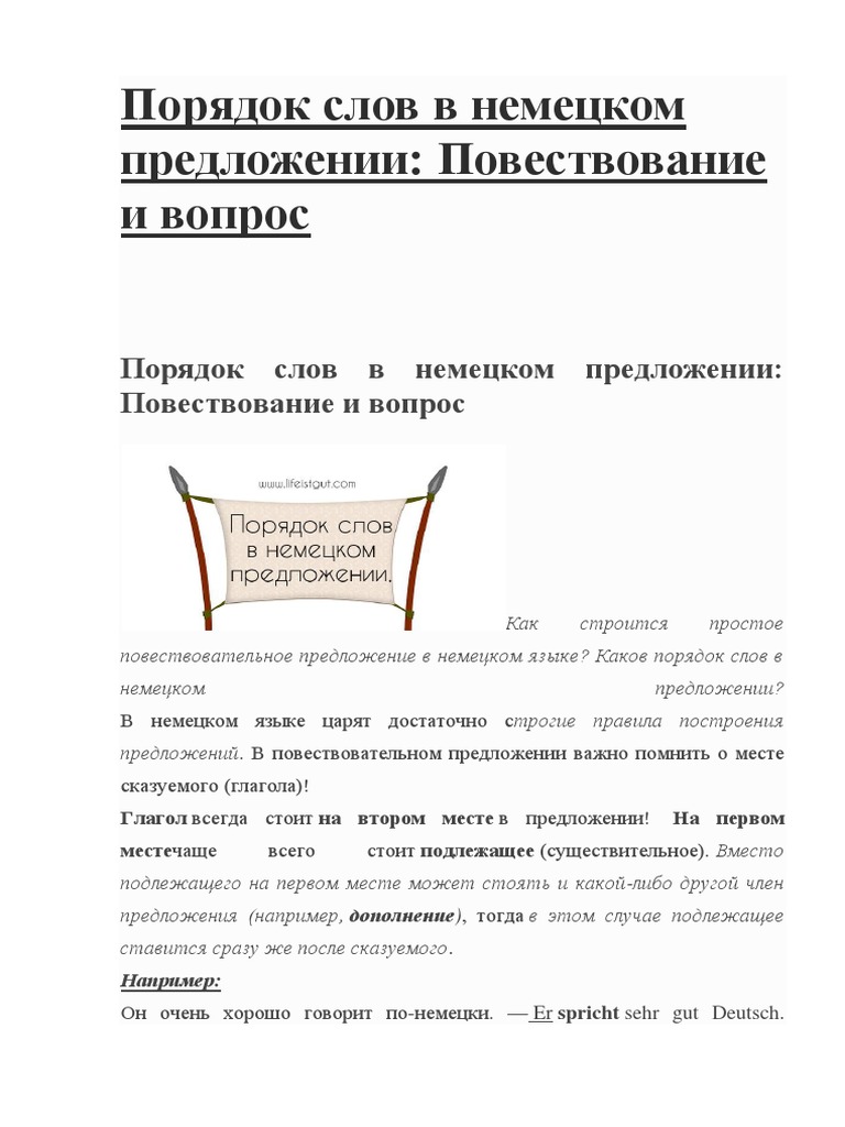 Poryadok Slov V Nemeckom Predlozhenii Germanfox Ru